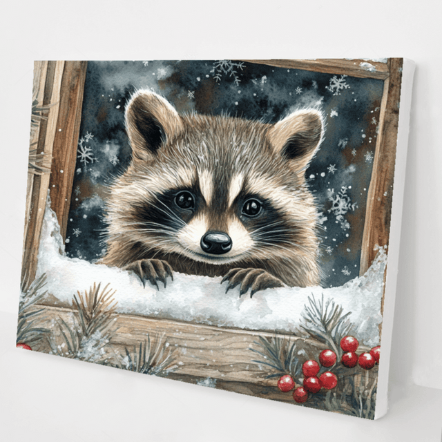 Peeking Raccoon in Winter Magic kit