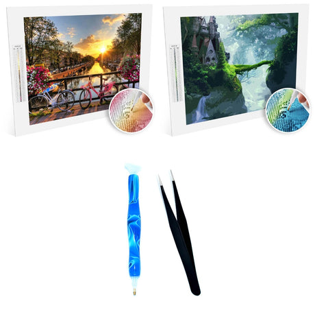 Diamond Painting Bundle 2 (2 Paintings + Premium Diamond Drill + Tweezers)