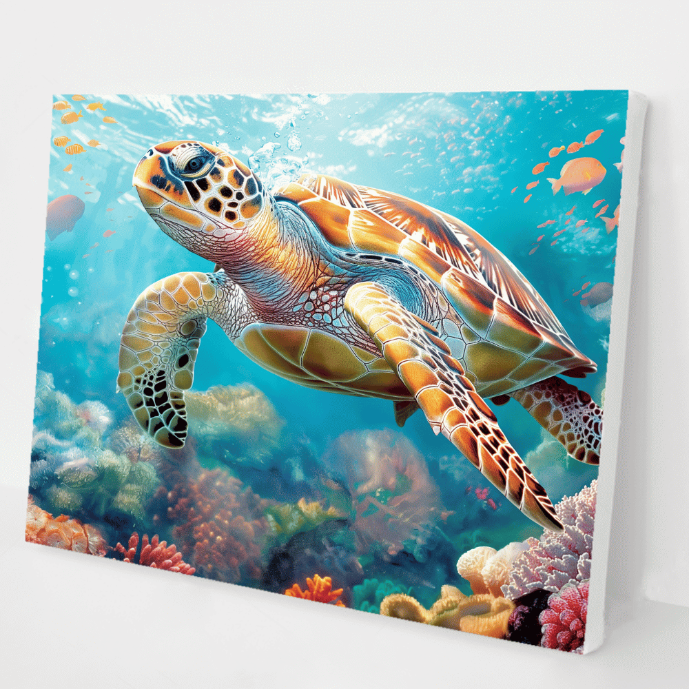 Papa Green Sea Turtle Easy Paint by Numbers Kit