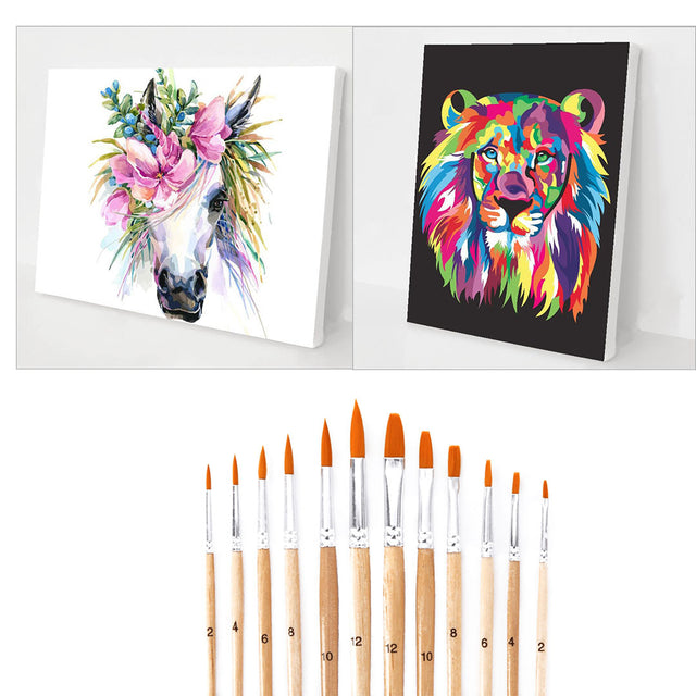 - 12 pcs Variety Brush Set - 6 round and 6 flat paintbrushes in varied sizes.